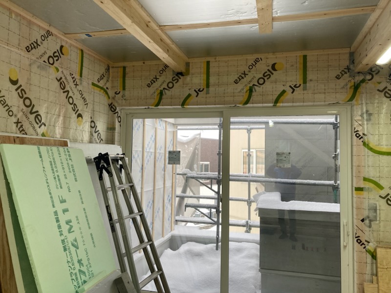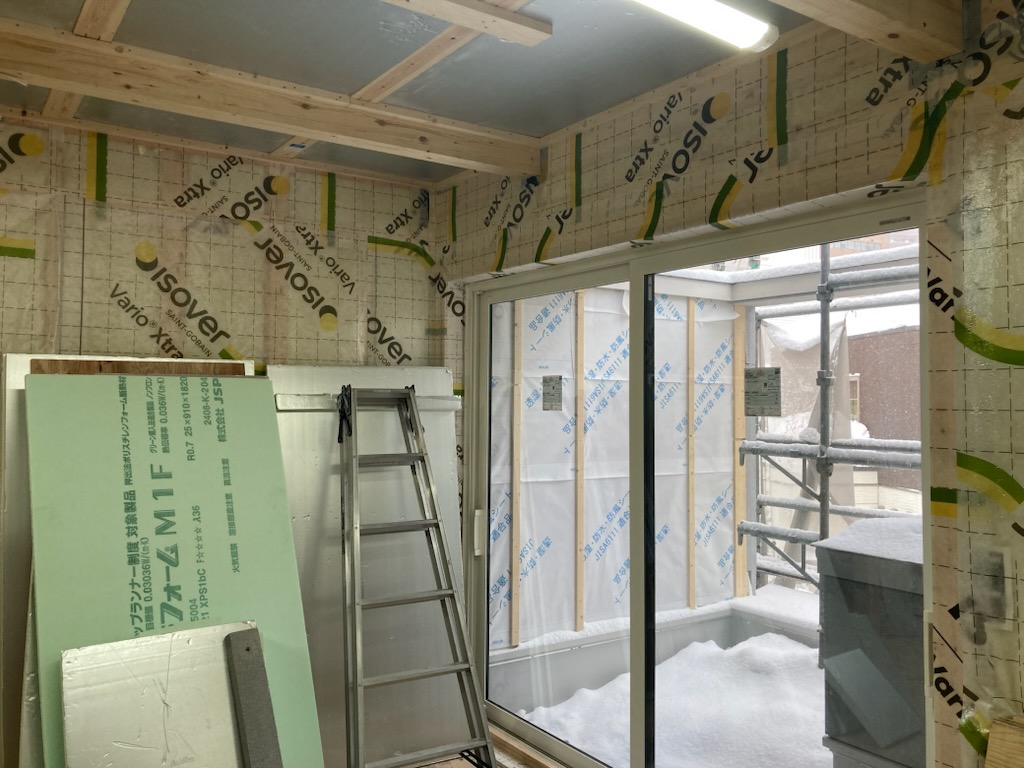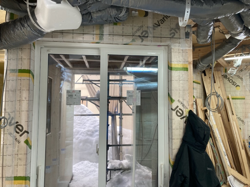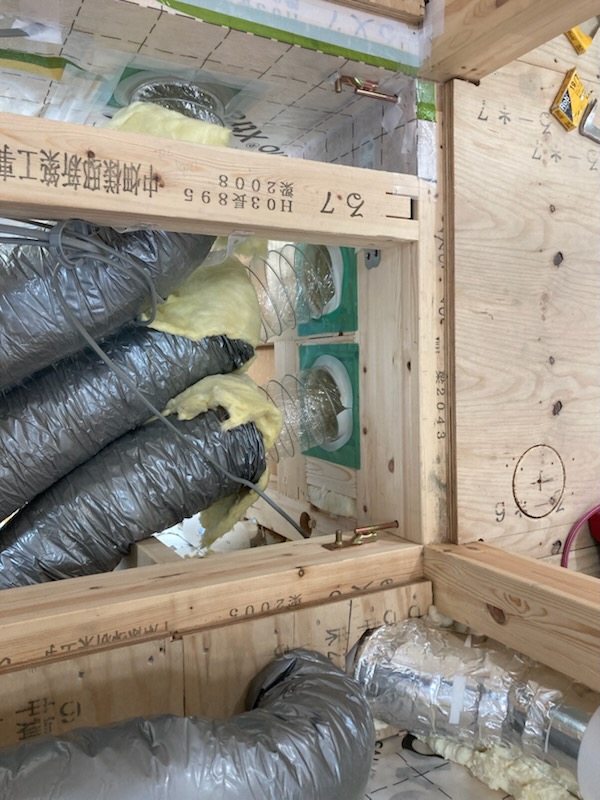 換気のダクト周りの気密処理です。
