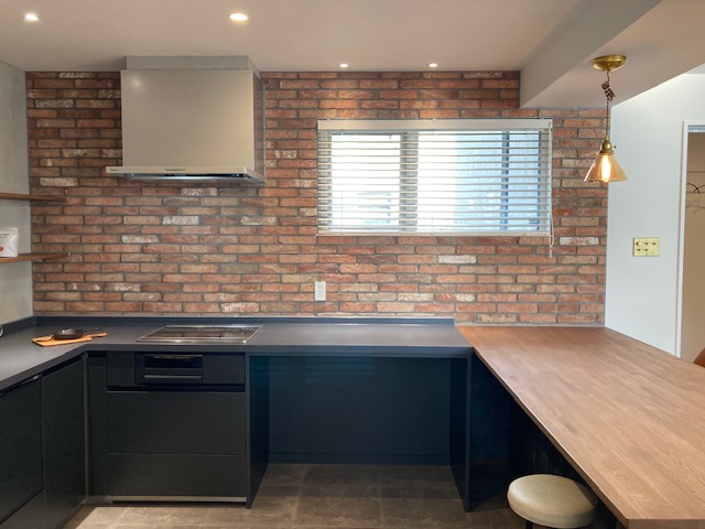 こだわりのブリックタイルとブラインドがカッコよく納まりました!