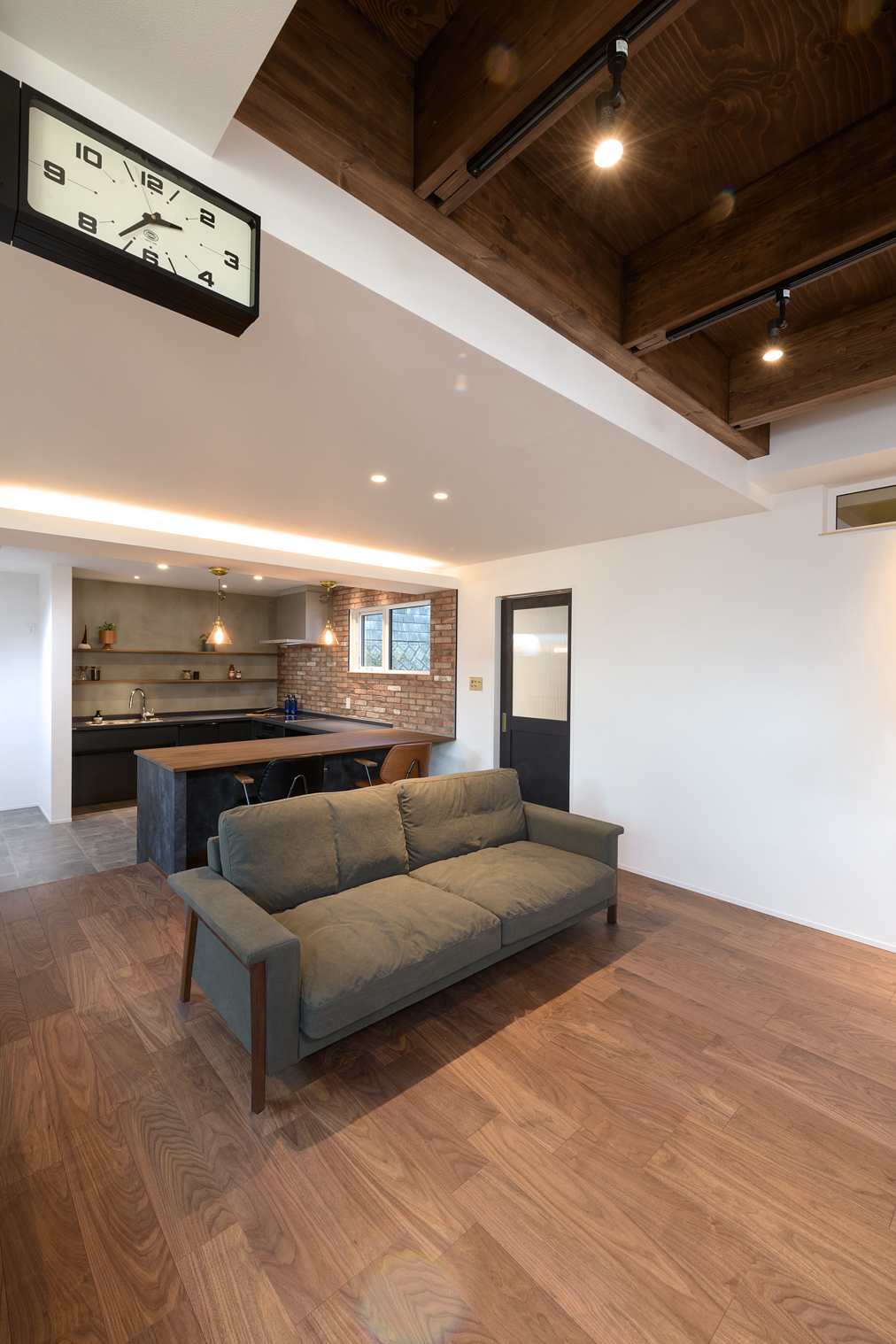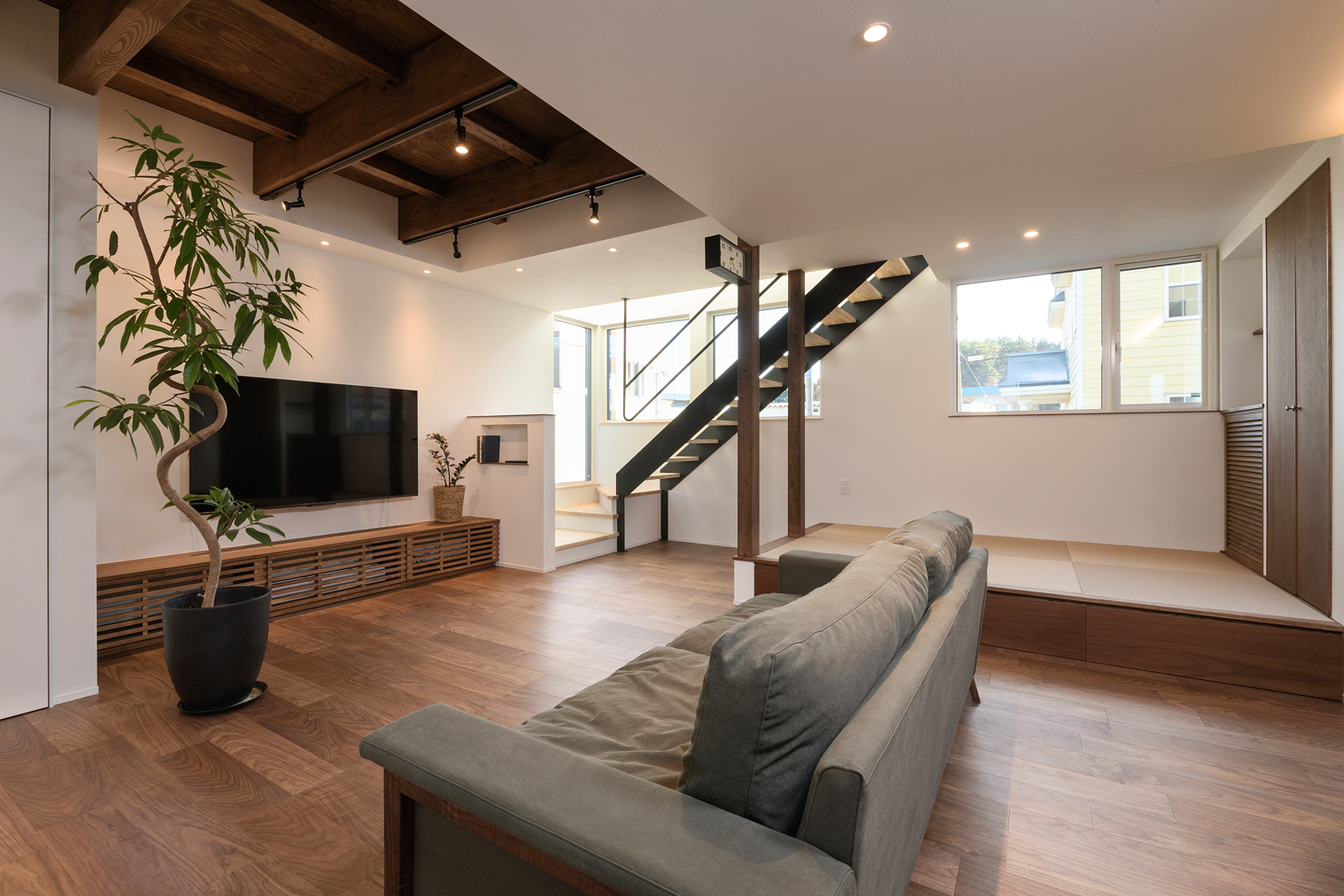 小さなお子様が走り回れる広いリビングと、雪かき不要なガレージハウスをご要望でした。